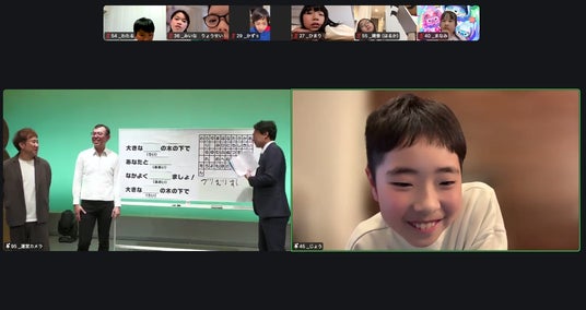 両回共通で行われたコミュニケーションタイムでは、「今日学んだこと」を発表してもらい、「韻をふむのが楽しかった!」「替え歌をつくれたのが嬉しかった!」といった声があがりました。さらに、有志の中から選ばれた参加者には、ジョイマンさんがその子の名前を使ったオリジナルラップを即興でプレゼント。照れながらも嬉しそうに画面の向こうで笑顔を浮かべていました。