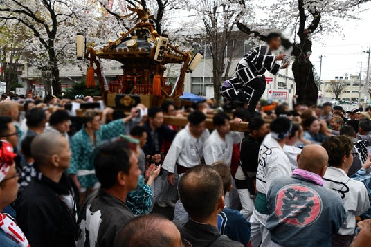 まつりの華 各地域の神輿が桜並木を練り歩く