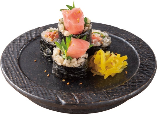 春の門出を祝う“ハレの日”に贅沢にお食事をお楽しみいただきたいという想いから、本鮪大とろをふんだんに使用した「はみ出しちゃった、本鮪大とろ 鉄火巻き」をご提供いたします。口の中でとろける脂の甘みと旨みが特長の大とろをはみ出してしまうほどのボリュームでお楽しみいただける贅沢な一皿です。刻みたくあんと大葉を合わせることで、大とろの脂と調和し、さっぱりと味わうことができます。
