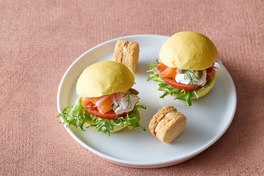 5段目:サーモン&フレッシュサラダのスライダー・バーガー/チーズとペッパーのサブレサンド