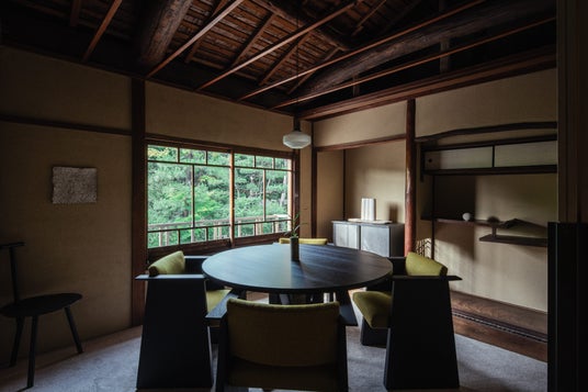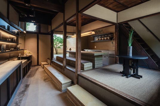 「FAS」の旗艦店となる京都東山店は、まちの喧騒から離れた一角に位置する、100年近い歴史をもつ一軒家をリノベーションしたものです。庭には日本の伝統工法である洗い出し式の床を採用。一階のカフェでは「FAS」のブランドコンセプトである「発酵と科学」に由来した発酵チーズケーキや、「FAS」を代表する成分「黒米発酵液」の原料となる黒米を使ったお菓子などをご提供しています。