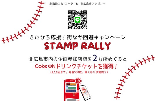 きたひろつながるウィークに合わせて、北海道コカ・コーラボトリング株式会社主催の「きたひろ応援!街なか周遊キャンペーン」を同時開催します。対象店舗の利用時に設置されている北海道コカ・コーラの2次元コードをスマートフォンで読み取っていただき、対象店舗のうち2か所にチェックインをしていただくと、コカ・コーラの公式アプリ「Coke ON」で使用できるドリンクチケットが入手できるチャンスです。詳細は、キャンペーンページからご確認ください。(「LINE」アプリが開きます)