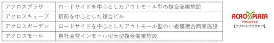 ロードサイドを中心としたアウトモール・インモールから駅前を中心とした複合ビルまで、地域に根差し、お客さまの暮らしに役立つ施設を全国で展開しています。「アクロス」という言葉には「人が行き交う」という意味が含まれています。「人が行き交う」空間を通じて、人との結びつきを大切にし、お客さまが楽しく過ごす時間を提供することを目指しています。