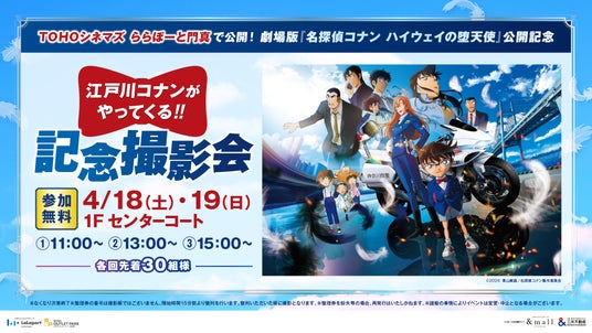 劇場版『名探偵コナン ハイウェイの堕天使』の公開を記念して、撮影会を開催します。当日はコナン君と一緒に写真撮影が可能です。映画はTOHOシネマズららぽーと門真で4月10日(金)から公開!今年の映画はぜひTOHOシネマズららぽーと門真でご覧ください。