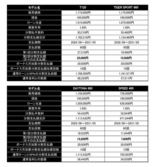 トライアンフの人気の新車を対象とした1.99% 特別金利ローンが登場。