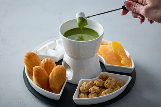 テーブルごとにお楽しみいただける抹茶チョコレートフォンデュ(別途料金)もご用意。マシュマロやドライマンゴーをたっぷりと絡めてお召し上がりください。