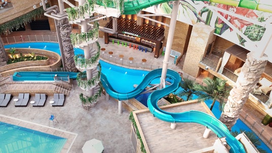 全長150メートルのデジタル・エンターテインメント・ストリート「オーロラ」では、高精細LEDによる幻想的な映像美でお客様をお迎えします。巨大なガラスドームの中に広がる「スプラッシュベイ」は、一年を通してトロピカルな気分を味わえる屋内ウォーターパークとして、スリル満点のウォータースライダーや流れるプール、そして夜はラグジュアリーなプールサイド・ラウンジとして、昼夜を問わずお楽しみいただけます。