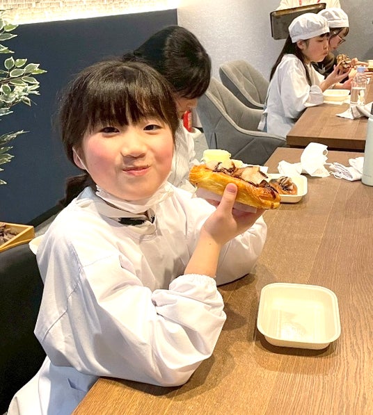 子どもたちが身近な名産品「梨」の生産過程を学び、生産者の想いと残念ながら天候などに左右されてB級、C級となってしまった梨も味はA級と変わらない事を知り、梨パンとして人気商品になってほしいと願いを込めたパンを実際に試食し、「おいしい!」「こんなのはじめて!」みんなの笑顔がいっぱい。