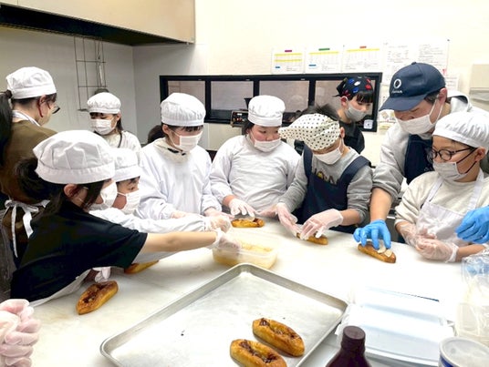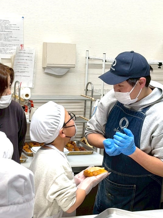 これまでに子ども達は、徳島県鳴門市の名産品・食文化や食品ロスについて考え、生産者、地元企業さんの前でプレゼンを行い、商品の値段について、販売する際のポイントなど、社会に出て必要となる多くの事を多方面で学んだ上で、今回2種類の梨パンを試作、製造へと実現させることが出来ました。