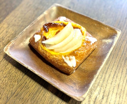 (左)コンポートされた梨のやさしい甘さとナルトベースの自慢のカスタードいっぱいのデニッシュパン