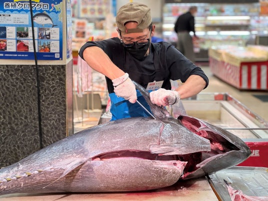 大迫力のまぐろ解体ショーも