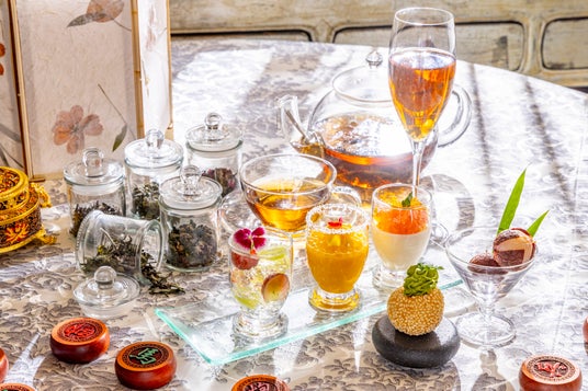 アフタヌーンティータイムをより上質に彩るお茶にもこだわりました。ピーチウーロン茶のウェルカムドリンク「桃園冷茶」をお楽しみいただいた後は、お好みに合わせて三国志に登場する女性たちをイメージするお茶をお選びいただけます。優雅な香りの白茶「特級白牡丹」、バラの華やかな香りを幾重にも重ねた紅茶「玫瑰花紅茶」、金木犀の上品で柔らかな香りの「黄金桂」ほか、「凍頂烏龍茶」、「東方美人茶」をご用意しています。