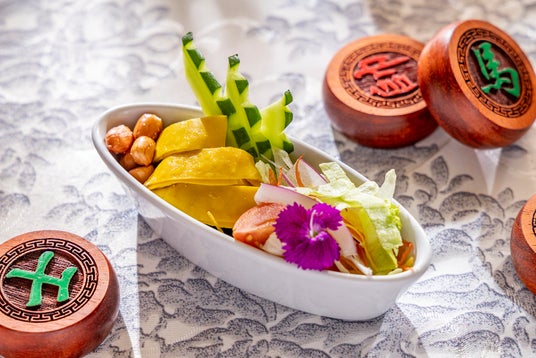 三国志の始まりを象徴する、名場面 桃園の誓い。劉備、関羽、張飛の三人が義兄弟の契りを結んだ物語にちなみ、蒸し鶏のサラダ仕立てを3種類のソースでご用意しました。チリ、ジンジャー、中国醤油、それぞれの味わいの違いを一皿でお楽しみいただけます。