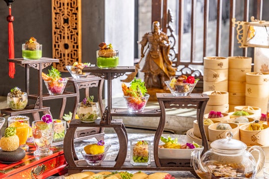 前菜からデザートまで、「三国志」の世界観で贈るチャイニーズアフタヌーンティー。9種のシェフズスペシャル、4種のスイーツとこだわりの中国茶、さらに点心はお好きなだけ
