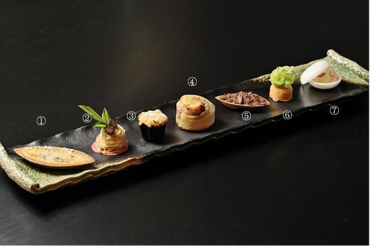 和食料理長 後藤孝宏とパティシエ 須田悦夫、ベーカリー 小牧若奈のコラボレーションによる爽やかで美しい彩りのアフタヌーンティーセットです。