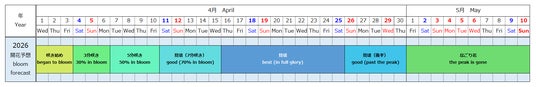 今年の見頃は平年より2日早い見込みです。