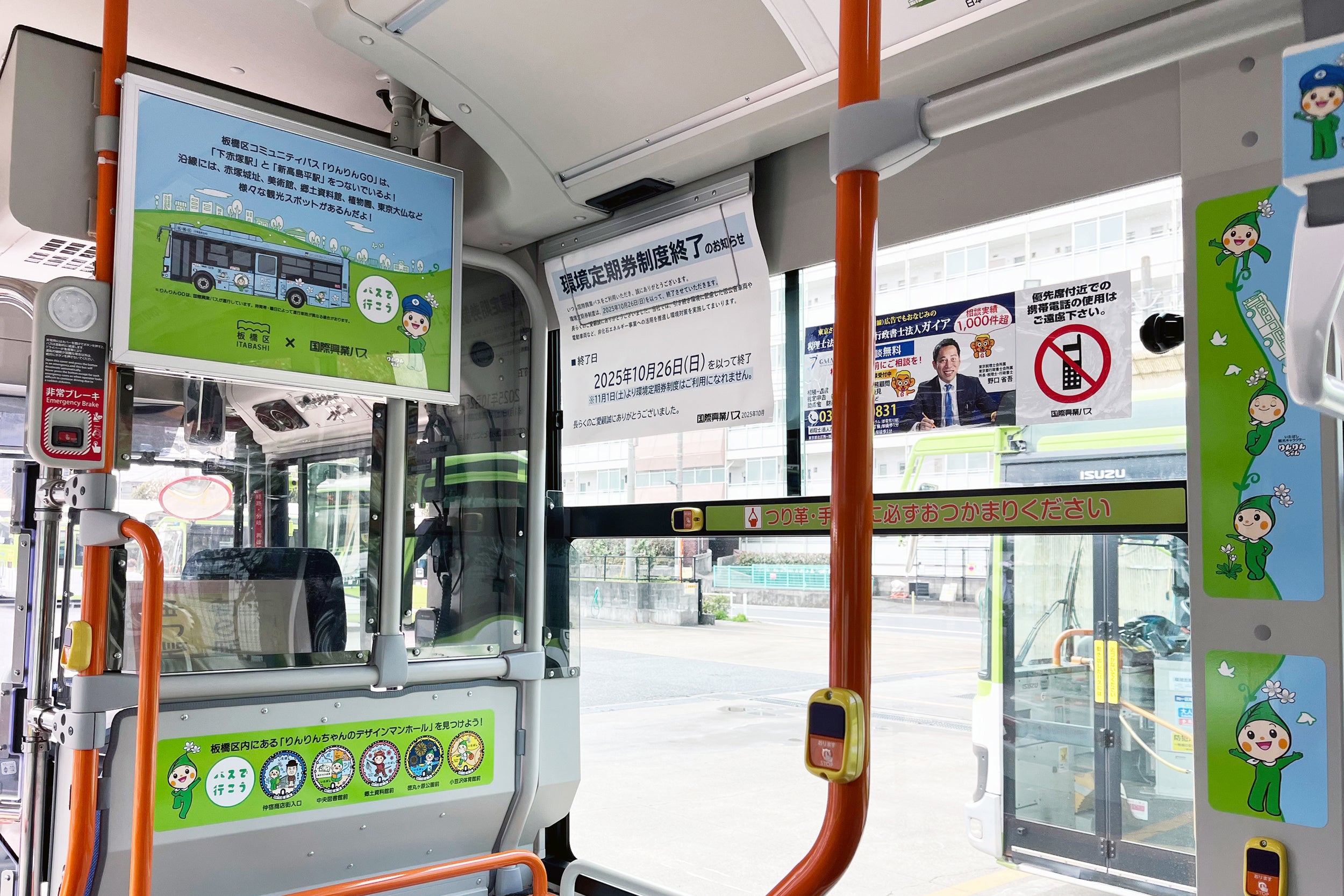 板橋区と国際興業株式会社が連携し、区の観光キャラクターである「りんりんちゃん」の車内装飾を施した路線バスの運行を開始しました。