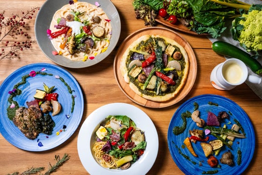 本館内の「おやさいダイニング レストランMORINIWA」は、埼玉県産の食材やヨーロッパ野菜を使用した料理を提供しています。里山の自然に囲まれた落ち着いた空間で、家族での食事や日帰りレジャーのランチ利用にもおすすめです。キッズメニューやレストラン内にデジタルコンテンツ「リトルプラネット」をご用意、小さなお子さま連れのご家族もゆったりとお食事をお楽しみいただけます。