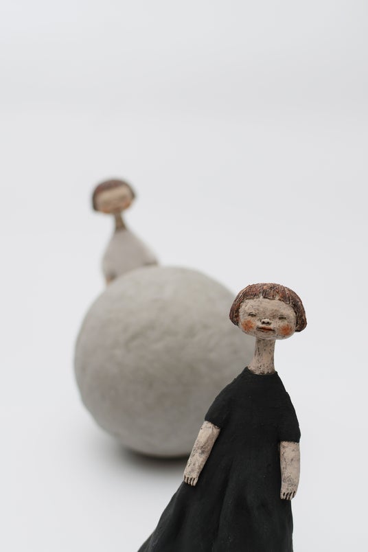 経塚真代「ひとつ/もうひとつ」 石粉粘土、木粉粘土、アクリル、岩絵具