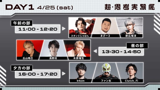 テクノロジーを用いた体験型エンターテイメントコンテンツ(イマーシブ/没入型コンテンツ)を提供する株式会社NO MORE(本社:東京都渋谷区、CEO:佐田晋一郎)は、2026年4月25日(土)・26日(日)に幕張メッセで開催される「ニコニコ超会議2026」にて実施する"じぶん没入体験"エンターテインメント『超・思考実験展』の全出演者および配信チケットの販売開始をお知らせします。
