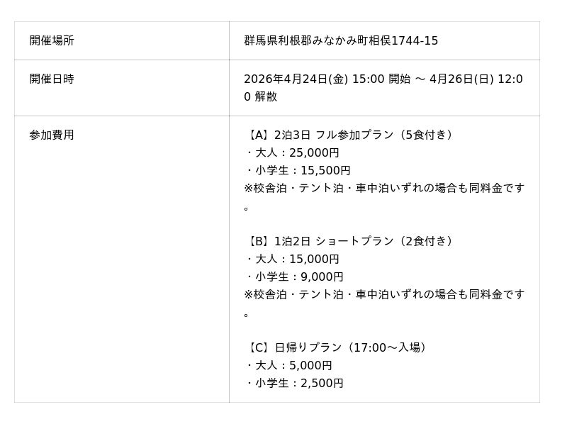 ■日程:2026年4月24日(金) 15:00 開始 ~ 4月26日(日) 12:00 解散