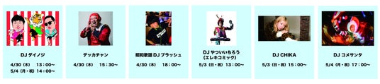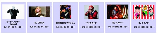 【5/6】14:00~デッカチャン/15:15~DJハスキー/16:00~DJダイノジ
