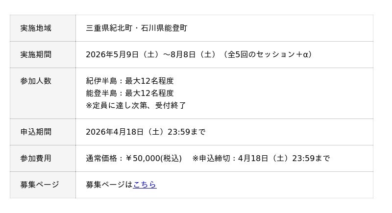 2026年5月から開催される100DIVE 11期プロジェクトの舞台が、三重県紀北町・石川県能登町に決定しました。