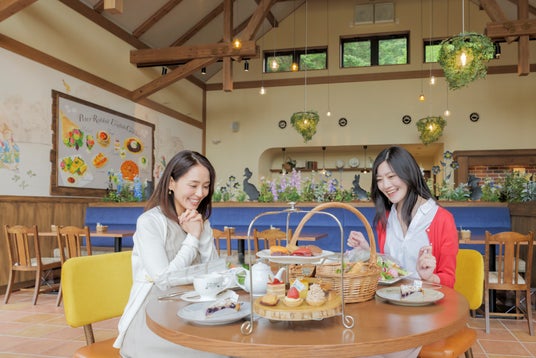昨年登場したピーターラビットとこねこのトムの、季節毎にお花が変わる可愛らしいフォトスポットや、全23巻からなる絵本シリーズの“おはなしのかけら”を散りばめた屋外ギャラリー「ピーターラビット(TM) ストーリートレイル」も見逃せません。季節の草花やキャラクターたちを探しながら散策し、絵本の世界に入り込む感覚を味わうことができます。ショップでは、山梨県の名産である桃やぶどうを持ったピーターラビットの可愛いキーホルダー等のグッズを販売。併設のカフェでは、ピーターラビットの絵本をモチーフとした「マグレガーおじさんのとれたて野菜のブーケサラダ」などのオリジナルメニューをお楽しみ頂けます。