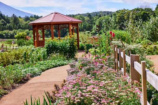ショップ内のギャラリーでは、『ピーターラビットのおはなし』をはじめ、『赤りすナトキンのおはなし』や『かえるのジェレミーのおはなし』など、5つのおはなしをテーマに絵本の世界に入り込んだような体験ができます。また、高さ約8mのガーデンタワーは、庭園越しに富士山を一望できる絶景スポットです。
