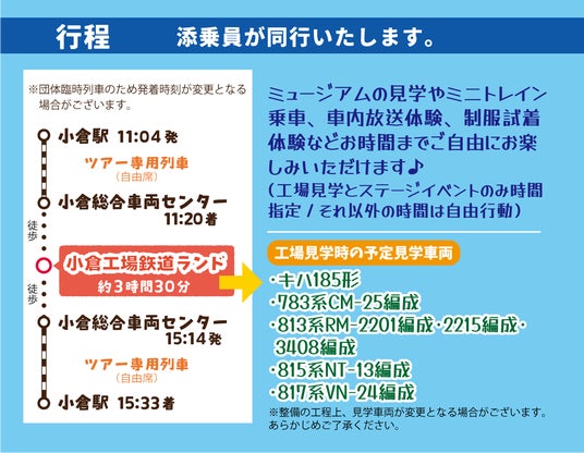 ■「工場見学」「車内放送体験」「制服試着体験」など、魅力的な体験メニューをご用意!