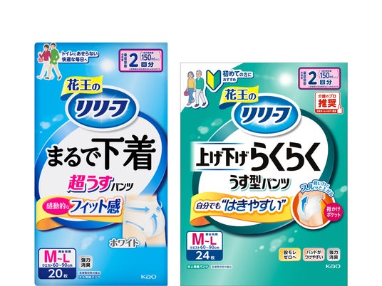 「リリーフ」コーナーでは、はきやすさ、はかせやすさに配慮した大人用おむつ「リリーフ 上げ下げらくらくパンツ」や、下着のようなはき心地が特長の「リリーフ まるで下着」など、各種商品を展示いたします。