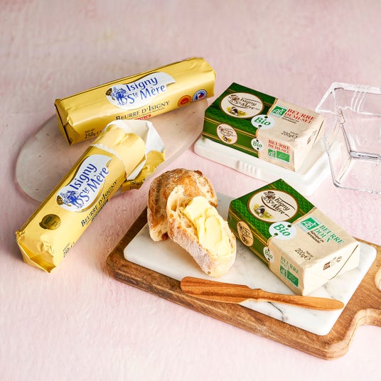 フランス・ノルマンディー地方の<イズニーサントメール>は、AOP認証を受けたバターを製造できる数少ないメーカーの1つ。ゴールドに輝く美しい色合い。なめらかで口に入れるとふわりと溶け、豊かなコクと芳醇なアロマが広がります。有塩は優しい塩気でバゲットや炒め物にぴったり。食塩不使用はミルキーでまろやかな味わいを存分に楽しめ、パンにコンフィチュールを添えても絶品。古くからフランスで愛される逸品です。