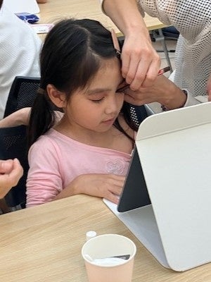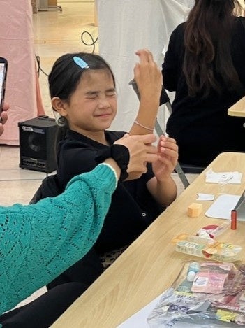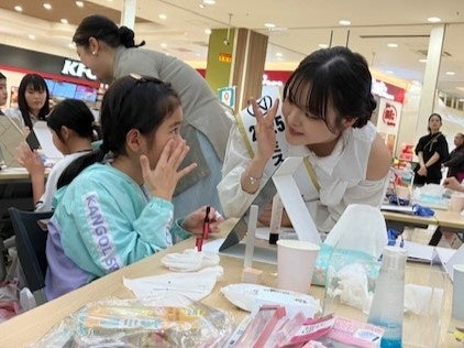 イベント冒頭での自己紹介に加え、メイクレッスン中にはお子様へのタッチアップも実施。直接アドバイスを受けながらメイクを体験することで、子どもたちの表情はさらにいきいきと変化し、会場は終始和やかな雰囲気に包まれました。