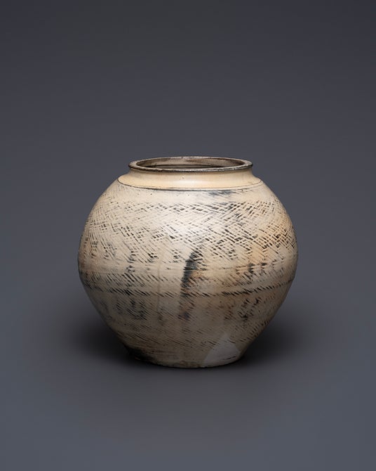 「粉引摺落叩き壺」(径25.4×高さ22.5cm)