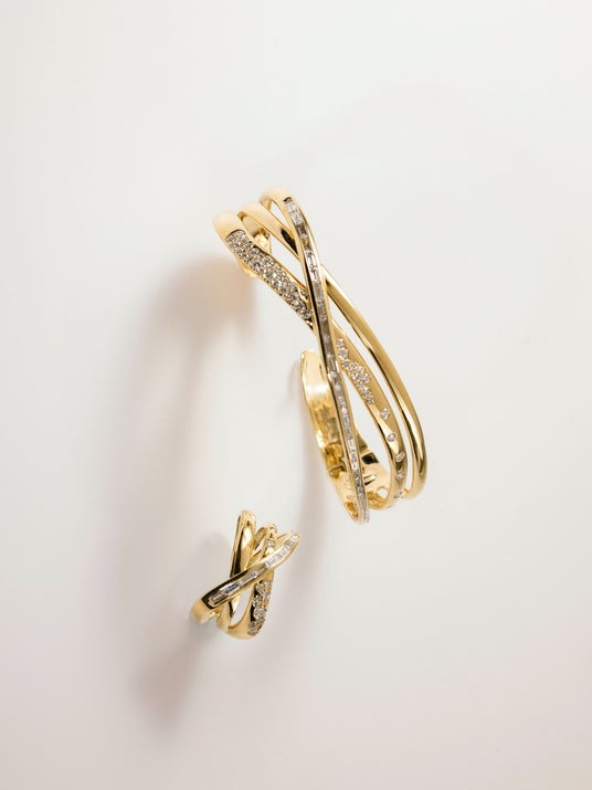 Papua Gold & Diamond Crossover Bangle ¥4,081,000 / Triple Crossover Ear Cuff ¥660,000