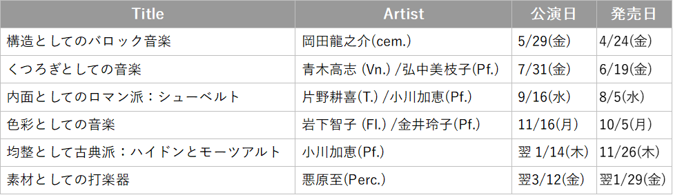 ■ 各回のテーマと演奏者プロフィール