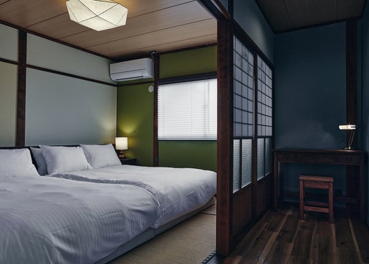2階は寝室3室とダイニング。日本ベッド社製の上質なマットレスを備えたダブルベッド4台と敷き布団3組で、最大11名様までご宿泊いただけます。