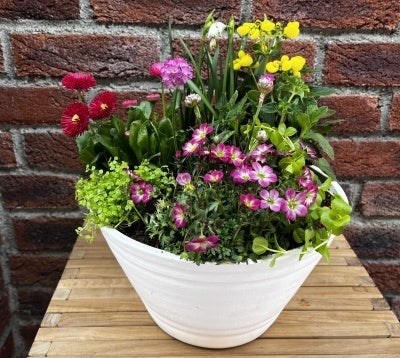季節を問わず様々な花が咲き乱れる寄せ植えは、一年中を楽しむことが出来、労力もあまり必要としません。