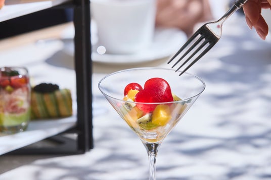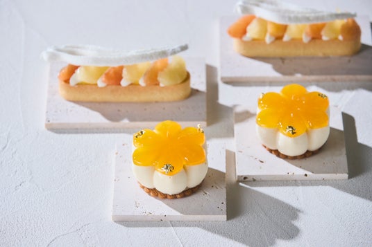 マンゴーとパッションフルーツのタルトや、ジャスミンが香るヴェリーヌ、アールグレイと合わせたシブーストなど、一口ごとに異なる香りと食感が広がり、初夏の余韻を感じさせます。さらに、ココナッツやトロピカルフルーツを取り入れたパフェなど、ユニークなスイーツが揃います。