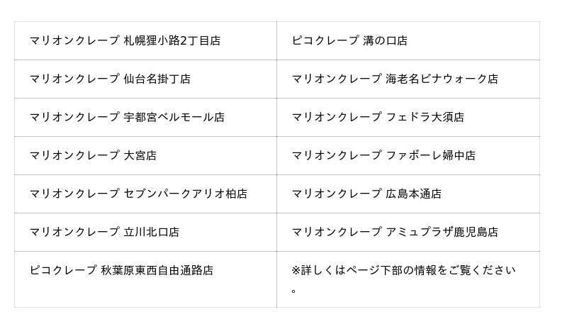 ※コラボクレープのご提供時間は各店異なります。各店の営業時間は各店WEBページにてご確認ください。