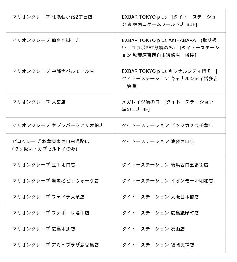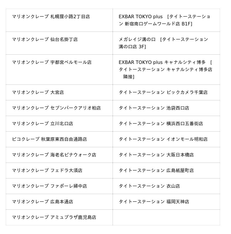 「パラノマサイト×タイトーステーション」コラボクレープ販売店舗: