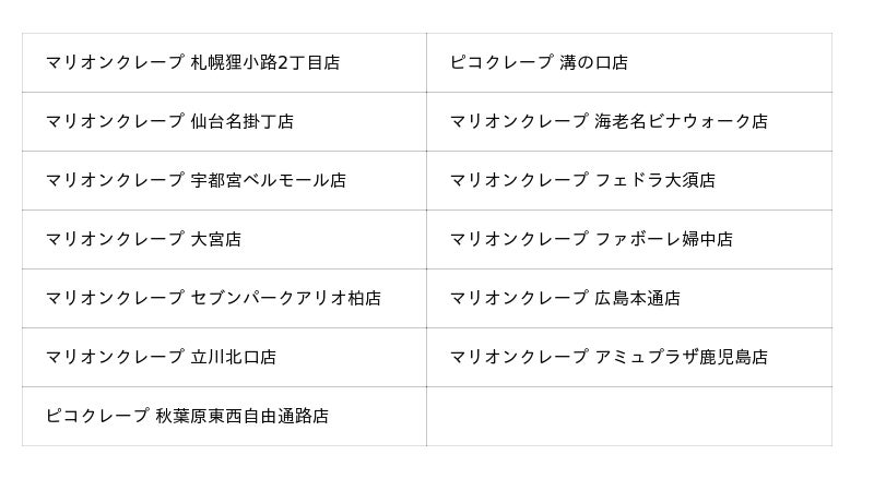 ※コラボクレープのご提供時間は各店異なります。各店の営業時間は各店WEBページにてご確認ください。