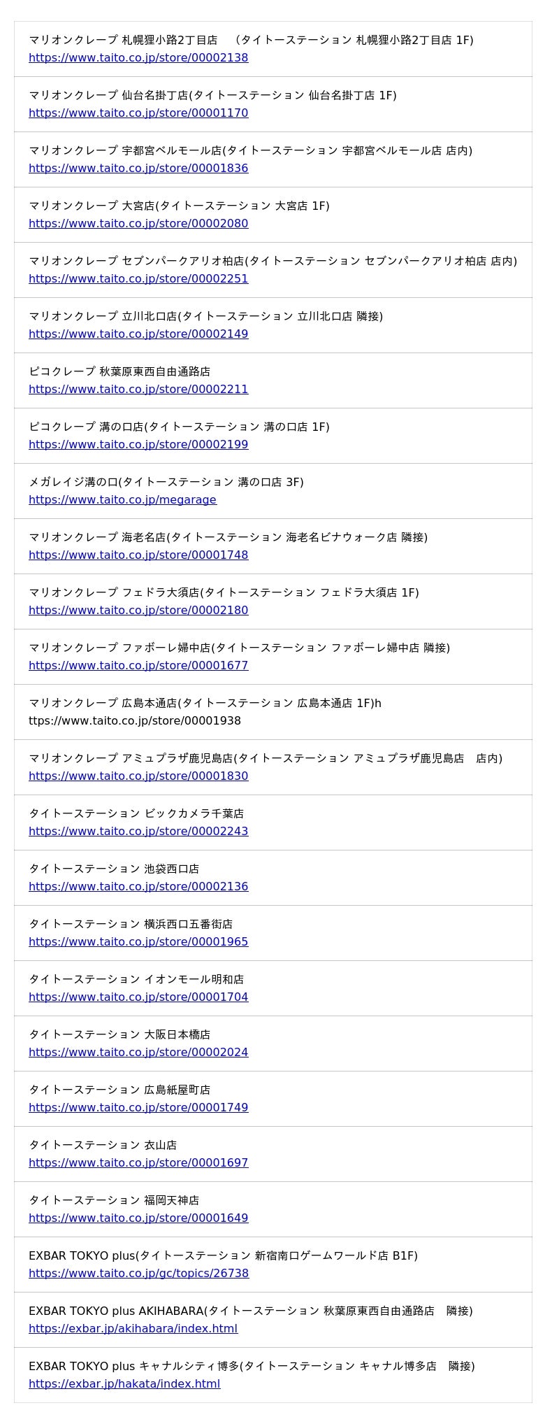 タイトーステーションに隣接したクレープ店 13店舗