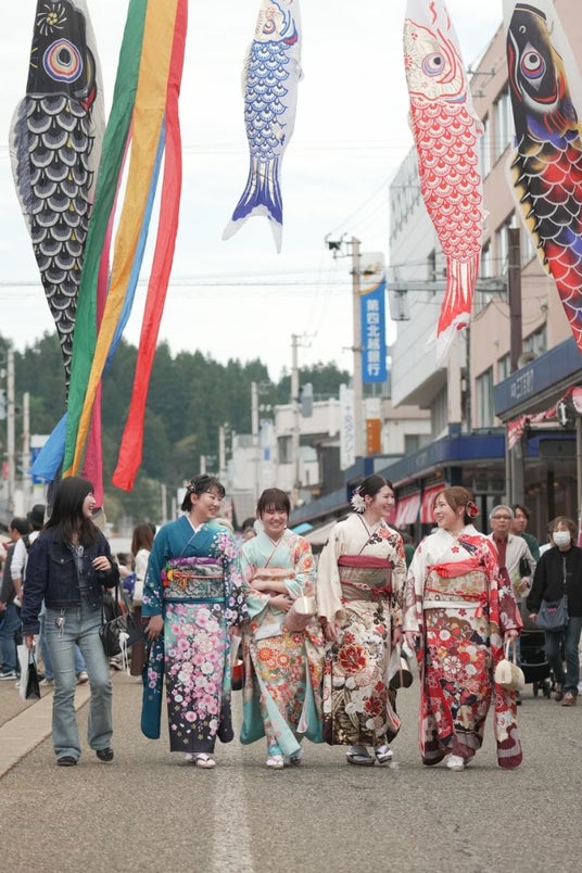 十日町きものまつりは、きものを特別なものとして鑑賞するだけでなく、実際に「着て、歩き、楽しむ」ことができるイベントです。まちなかを歩く人々のきもの姿、二十歳のつどいを迎えた若者たちの晴れ着、地域の伝統行事十三詣りや稚児行列など、この日、十日町のまちは“きもののある日常”そのものに包まれます。