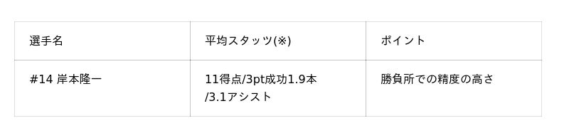 キングスが守備から組織的な攻撃につなげる鍵となるのは、経験豊富なハンドリングと冷静な判断が持ち味の#14 岸本隆一選手をはじめとしたガード陣の躍動です。熱戦が予想される展開で、いかに冷静に勝ち筋を見出すか、勝負所での粘り強さにも注目です。