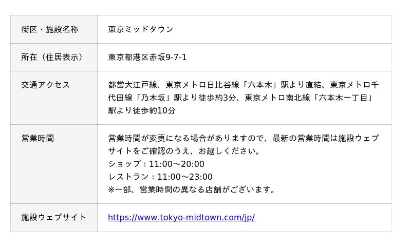 アートやデザイン、トレンドの発信地であり、世界中から多くの人々が集う東京ミッドタウン。芝生広場という開放的な空間に、生産者や各分野のプロフェッショナルによるトークと体験を融合させた「劇場型ワークショップ」エリアが新たに登場します。さらに、今回初展開となる「オフィシャルバー」では、注目の飲食店が日替わりで登場し、特別なテイスティング体験を提供します。各種チケットはオンラインで事前購入いただけます。なお、一部チケットは数量限定での販売となりますので、ぜひお早めにご確認ください。