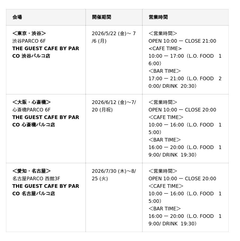 株式会社パルコ(本部:東京都渋谷区/以下、パルコ)は、L'Arc-en-Cielの結成35周年を記念したコラボカフェ「L'Arcafe 2026 at PARCO CAFE」を、渋谷、心斎橋、名古屋のPARCOに展開する「THE GUEST CAFE BY PARCO」3店舗にて、期間限定でオープンいたします。