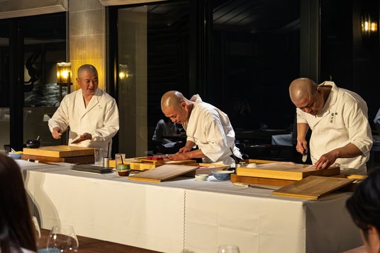 日本を代表する三つの鮨店の大将が一堂に会する本企画は、過去に例を見ない初の試みであり、三者三様の江戸前鮨を一度に味わえる、唯一無二の美食体験となりました。