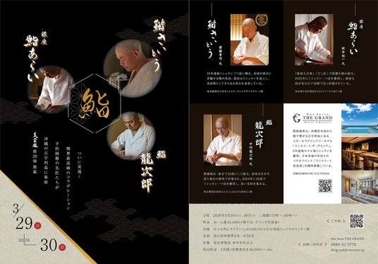合同会社One Suite(本社:沖縄県今帰仁村/代表社員:貝塚志朗)が沖縄本島北部にある古宇利島にて運営するホテル「One Suite THE GRAND(ワンスイート ザ・グランド:今帰仁村古宇利)」は、去る2026年3月29日(日)・30日(月)の2日間、施設内レストラン「La BOMBANCE古宇利島」にて”ワンスイート美食旅 第26弾”と題して、六本木「鮨 さいとう」、銀座「鮨 あらい」、南青山「鮨 龍次郎」の3店舗合同のコラボディナーイベントを開催いたしました。