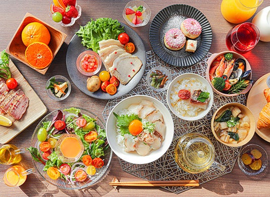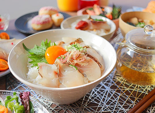 愛媛県は、養殖マダイの生産量日本一を誇る、真鯛の名産地です。県を挙げた食文化の発信に呼応し、館内レストラン「Sera Seto(セラ・セト)」では、地産地消にこだわった和洋バラエティ豊かな朝食ブッフェをご用意しています。松山名物「鯛めし」や「じゃこ天」「じゃこカツ」、彩り豊かな「五色そうめん」、郷土料理の「芋炊き」など、地元ならではの味覚をお楽しみいただけます。